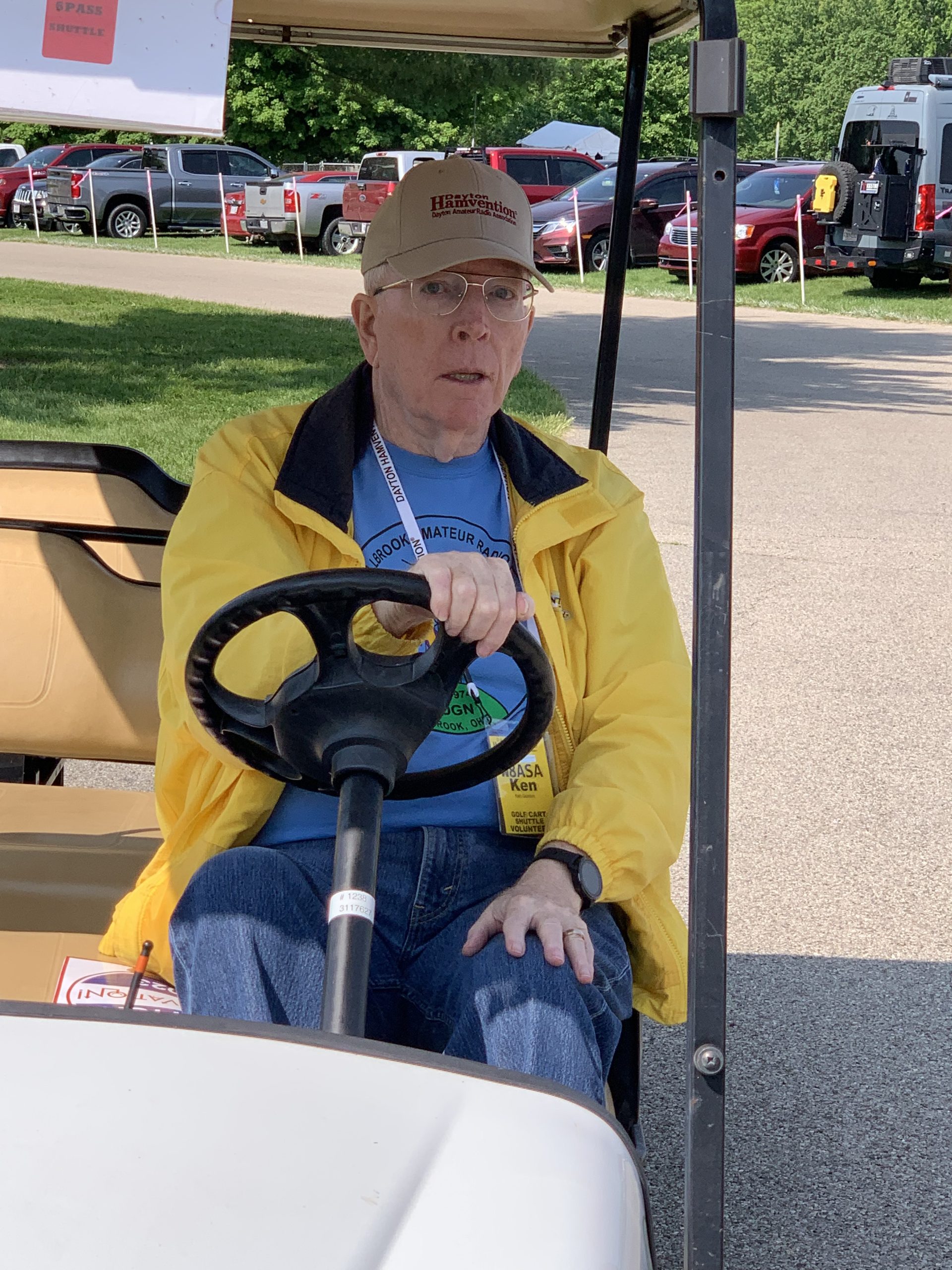 Ken Gunton W8ASA volunteering driving a golf cart